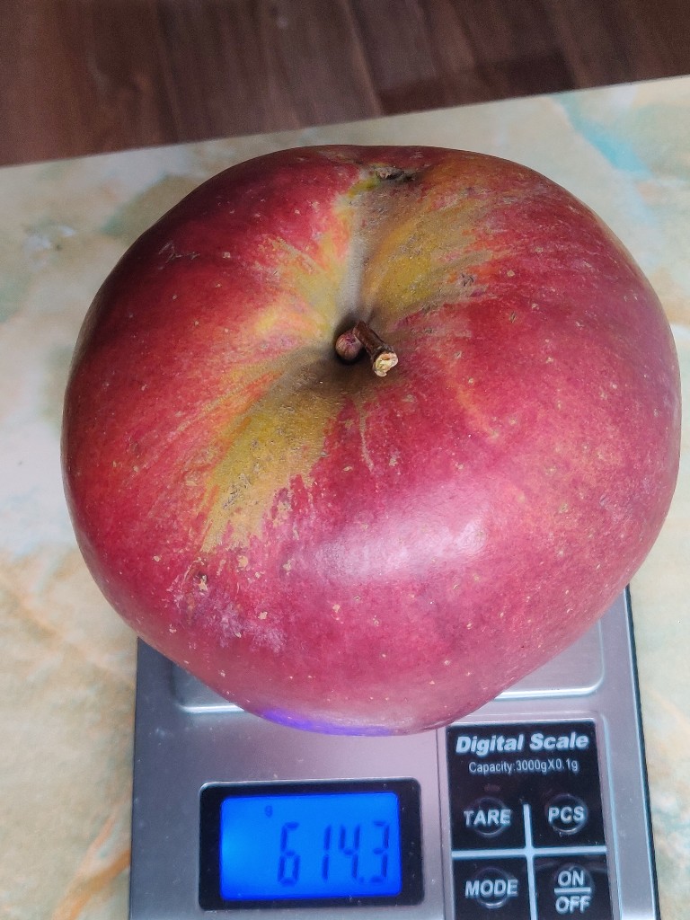 Энди Таккер, я и не говорю, что это "чистый" фуджи. Он такого размера не бывает. Но фуджи один из чемпионов по количеству клонов и мутантов. И "фуджи-гиганты" - явление зарубежному интернету хорошо известное. Просто заведите в поиск в Гугле "giant fuji apple" или "extra large fuji apple"
