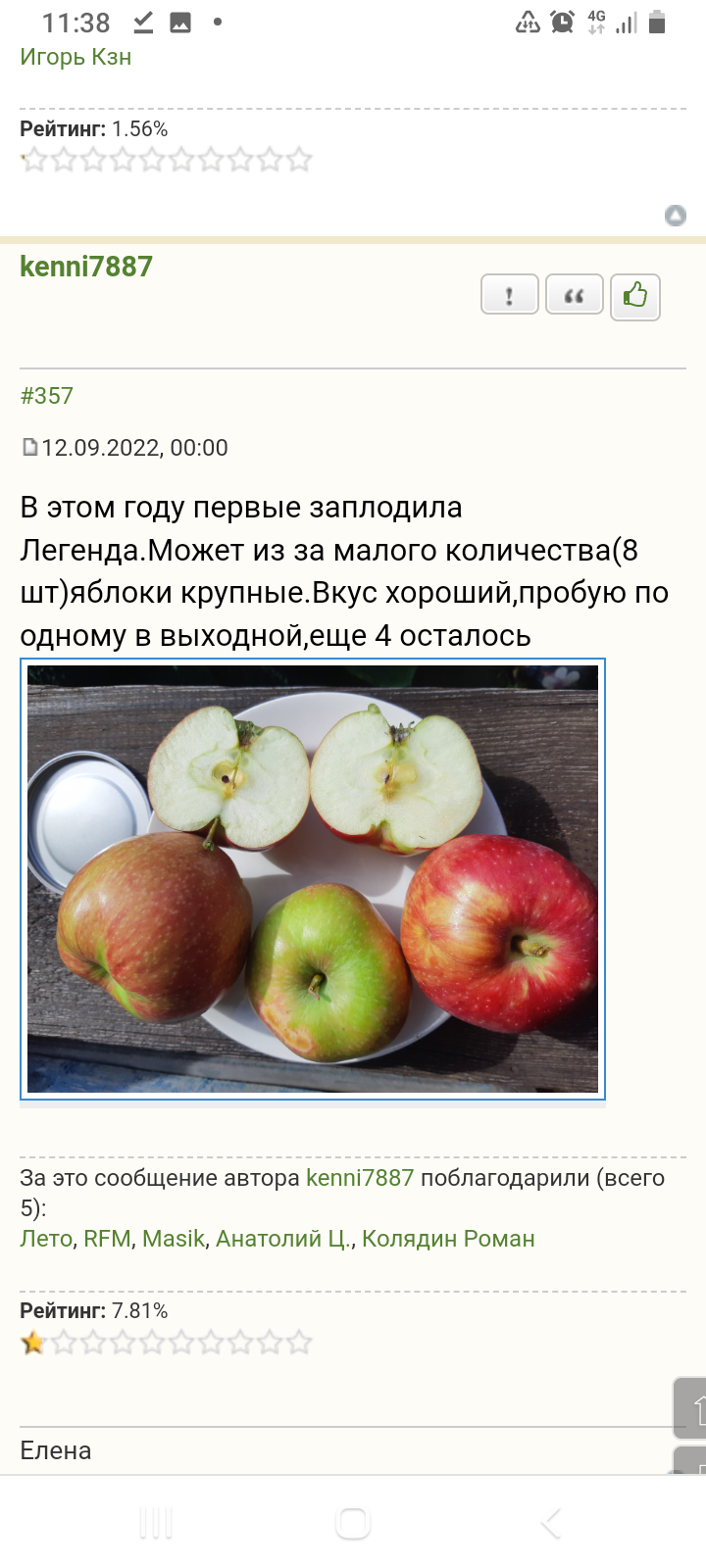 Скорее всего Анис полосатый.Җәй писал(а): ↑23.11.2022, 00:36 Салам алейкум всем! Подскажите что за сорт яблони может быть? Средний вес 120-130 г. Осеннее, мякоть белая, кисло-сладкая, немного с нежностью в ноябре. Обычно эти яблоки вкусом не отличались, но в этом году слаще стали и вполне так очень даже не плохо. Своя оценка вкусовая в этот сезон -44. Семечки короткие, как бы круглые, среднего размера. Дерево с округлой кроной.IMG_20221118_131418.jpg