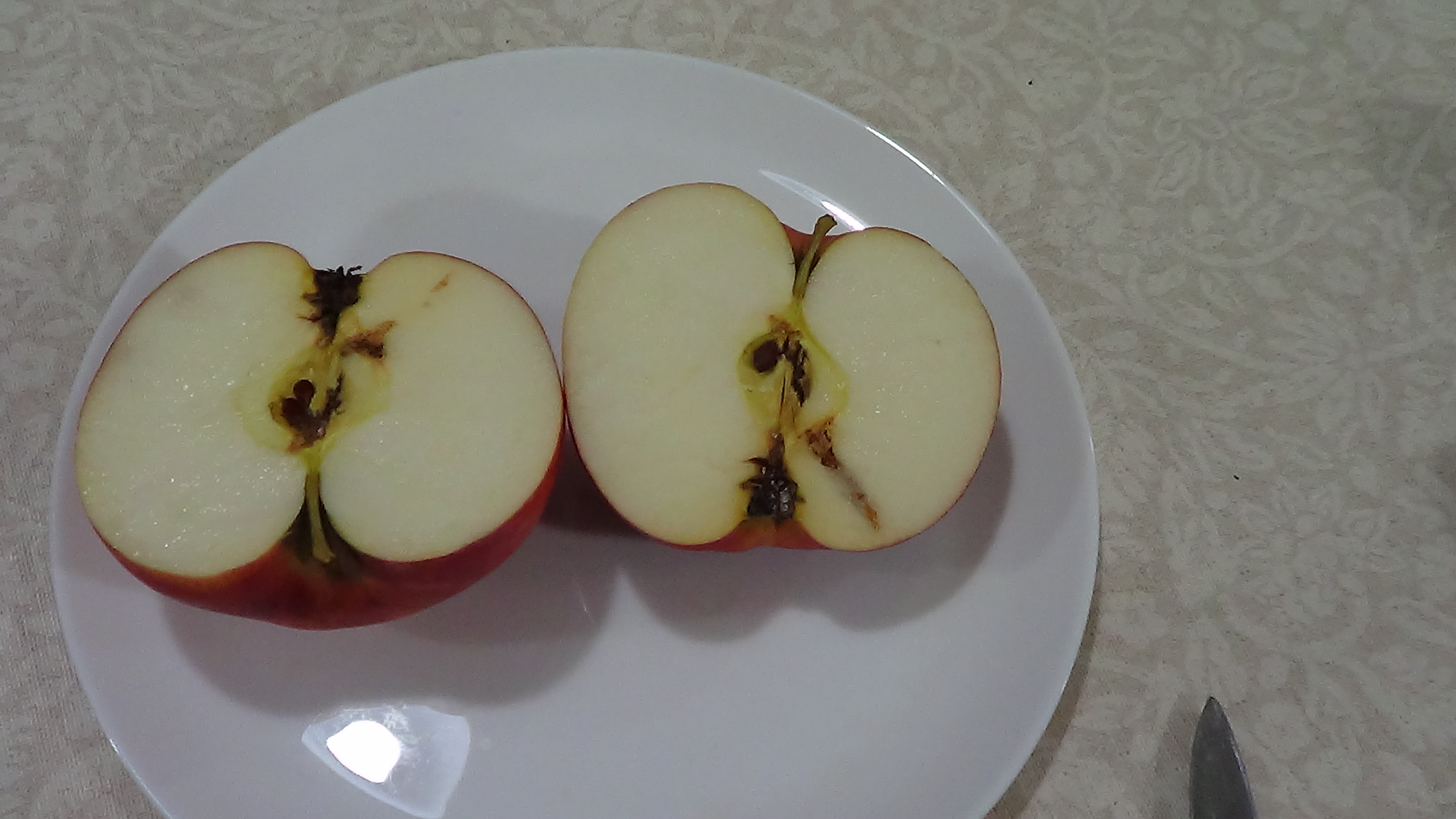 Салам алейкум всем! Подскажите что за сорт яблони может быть? Средний вес 120-130 г. Осеннее, мякоть белая, кисло-сладкая, немного с нежностью в ноябре. Обычно эти яблоки вкусом не отличались, но в этом году слаще стали и вполне так очень даже не плохо. Своя оценка вкусовая в этот сезон -44. Семечки короткие, как бы круглые, среднего размера. Дерево с округлой кроной.