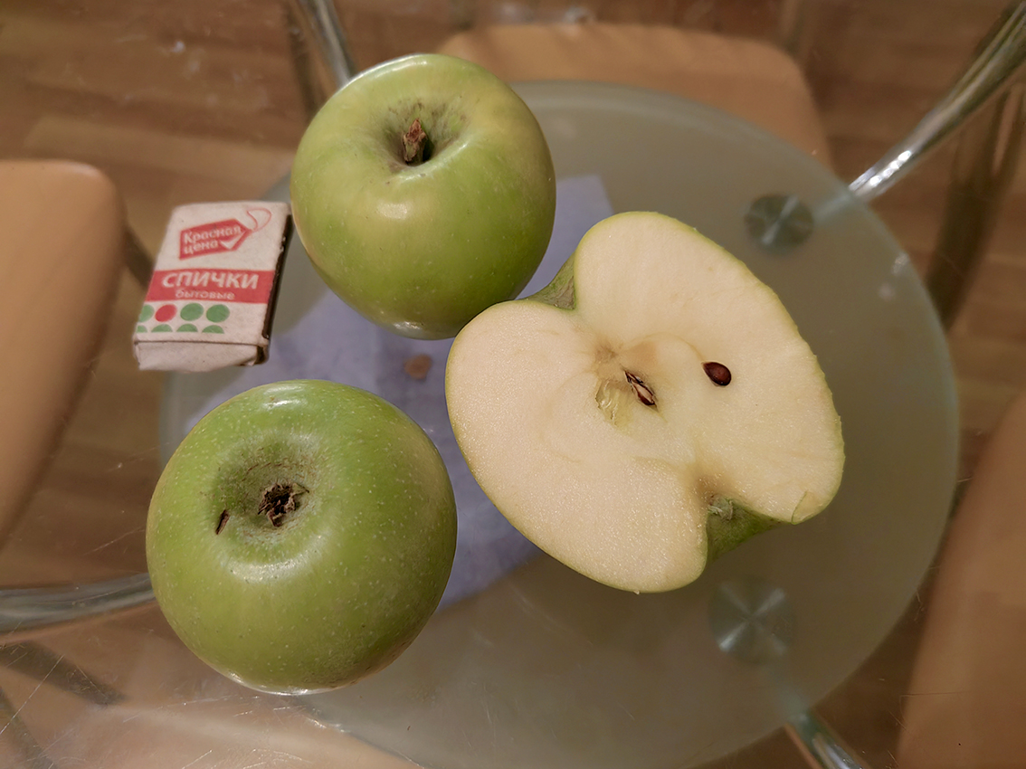 На фото в сравнении с ХК (320г.), Ренет Симиренко-130-150г.