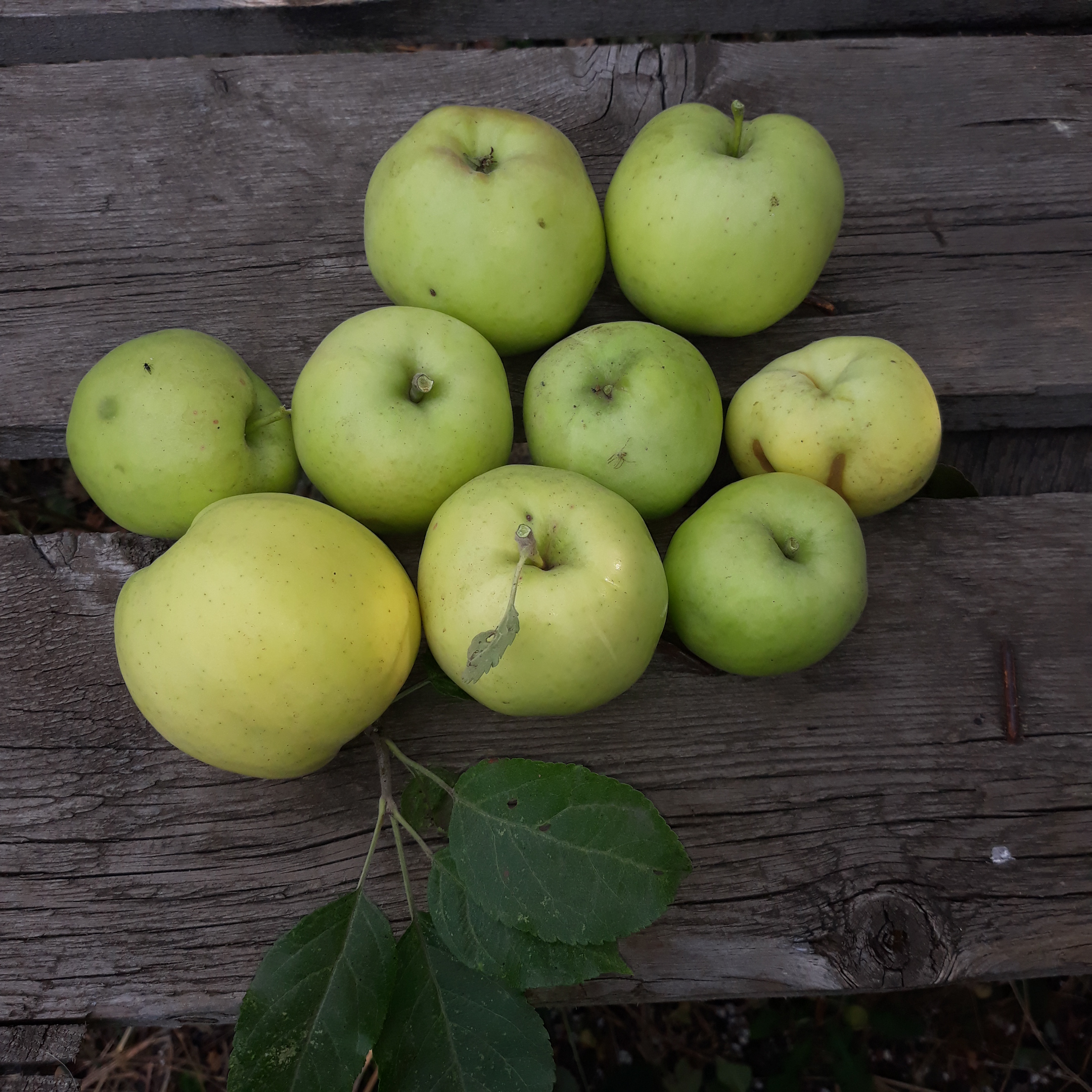 В прошлом году с помощью форумчан определили этот сорт ,как Симиренко или его производные.Снял 12.10,рановато.Дегустировал в январе, вкус похож на магазинные Симиренко.В этом году сниму по первым морозам.Весной привил на него П.Липунову,следующей весной привью на него производные от Симиренко, максимально похожие на него.В саду есть саженец Симиренко на 396 из надежного источника, возможно в следующем году будут сигналки.Надеюсь, если не вмешается дед Мороз, сорт будет определен.