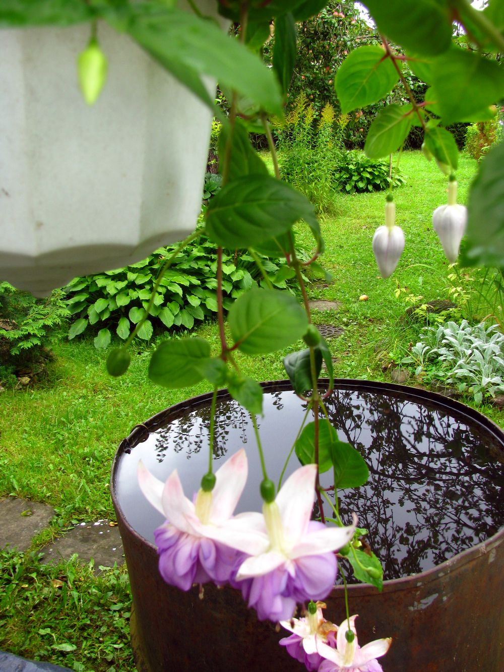 Все пытаюсь сфотографировать фуксии. Но каждый раз -неудачно. Почему-то не в фокусе. Завтра опять дождь - попробую