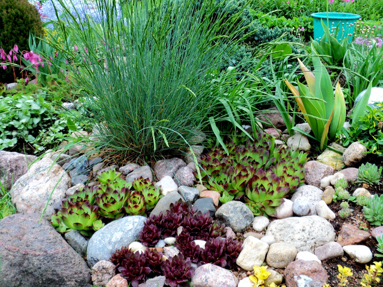 Кроме того сохраняю по возможности имеющуюся растительность: какие-то кочки злаков, я в злаках не разбираюсь, но цвели они прошлым летом красиво и рука не поднялась корчевать, розы с простейшим цветочком. Вероники, примулы, само собой. Прошлым летом посадила ромашки махровые и капские маргаритки, эхинацею и клематис кустом, маленькие колокольчики. И пряные травки, мяты какие-то, тут их много.