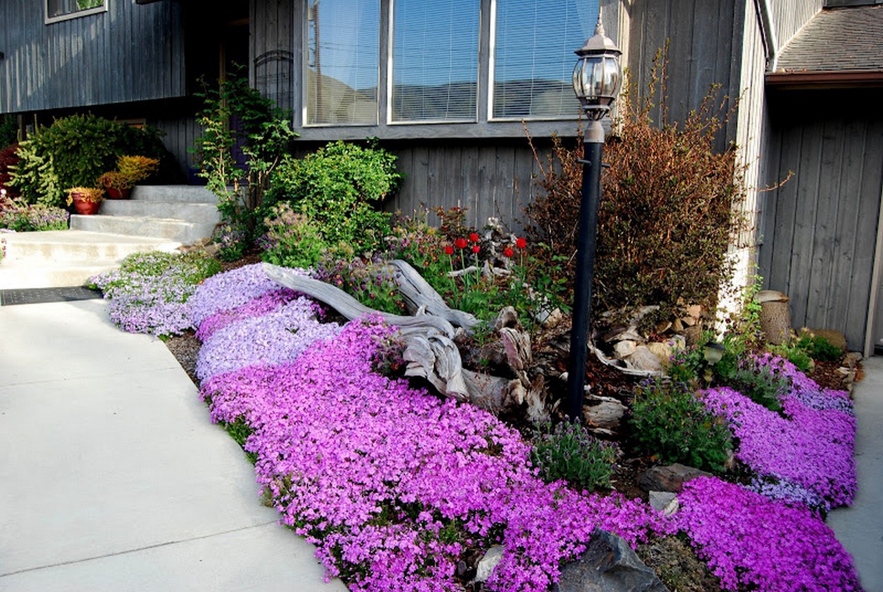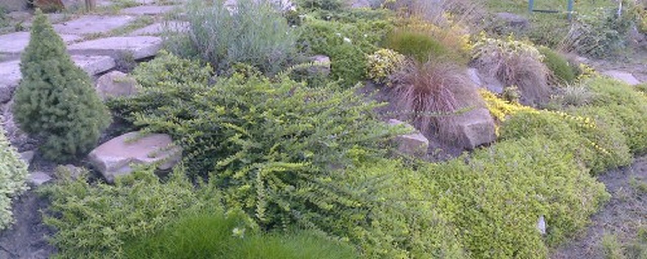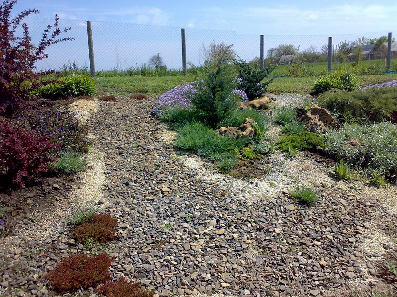 На данный момент передо мной стоит задача обустройства в цветник малого ухода крутого южного склона. Почва тяжёлая, каменистая. Уклон, если ориентироваться по циферблату — 10 часов. Из родной, дикой растительности здесь чабрец, примулы, вероники, лапчатки, герани, коровяки, тюльпан родопский и многое другое.