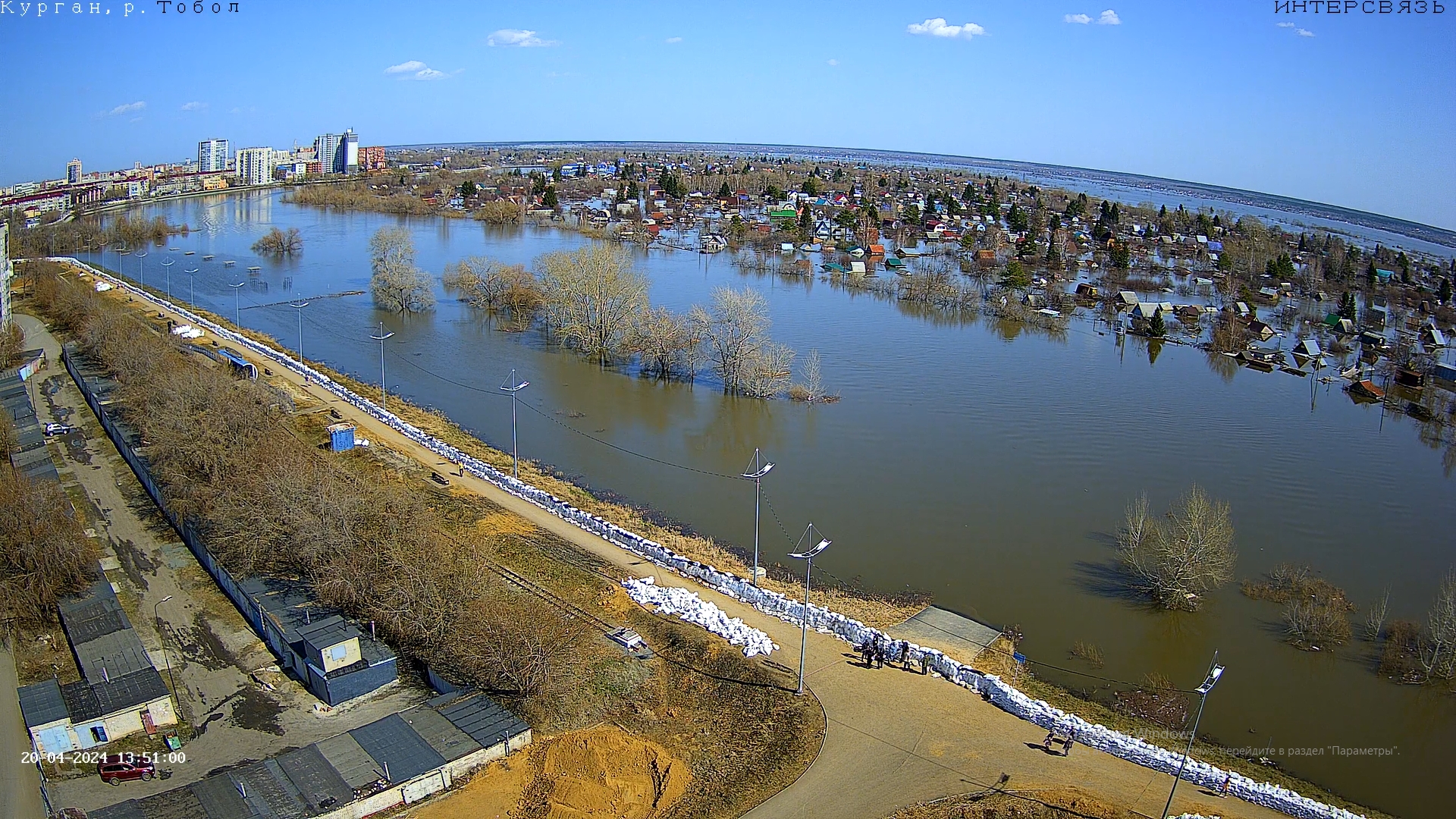 Дамба защищает город, сады в основном на другом берегу.