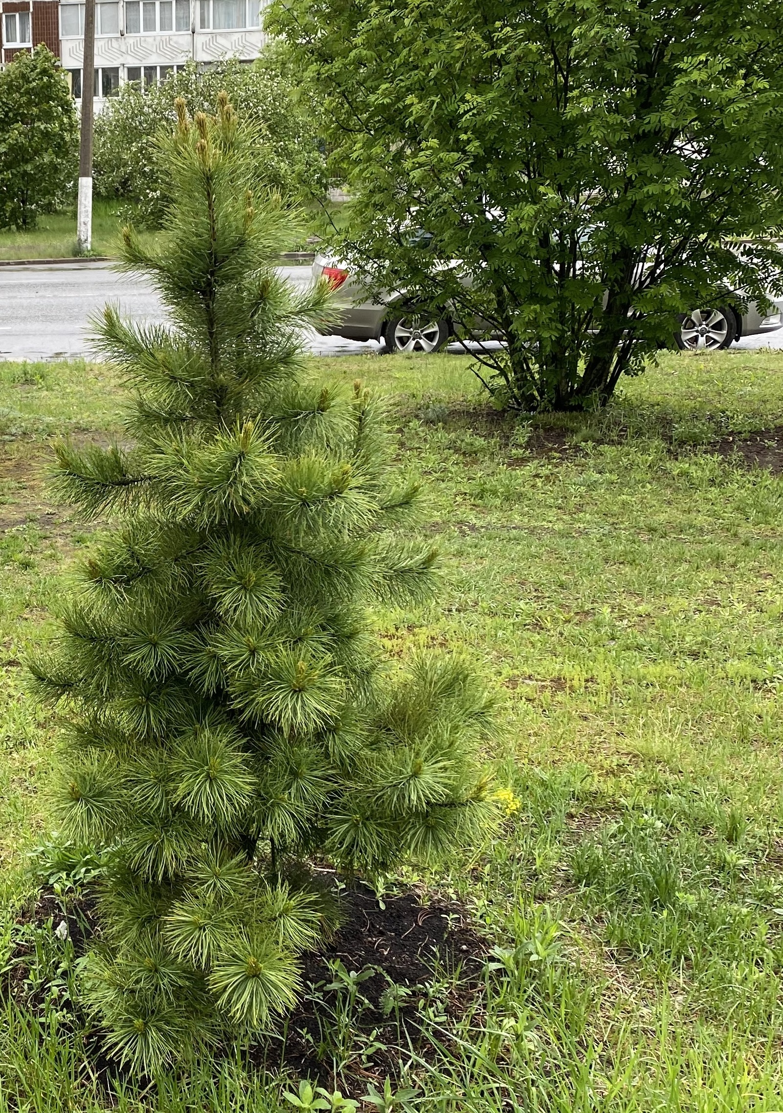 В 2014 году эта сосна кедровая была маленьким-маленьким саженцем. С нее начались наши посадки деревьев и уход за ними по приезду в Кингисепп.