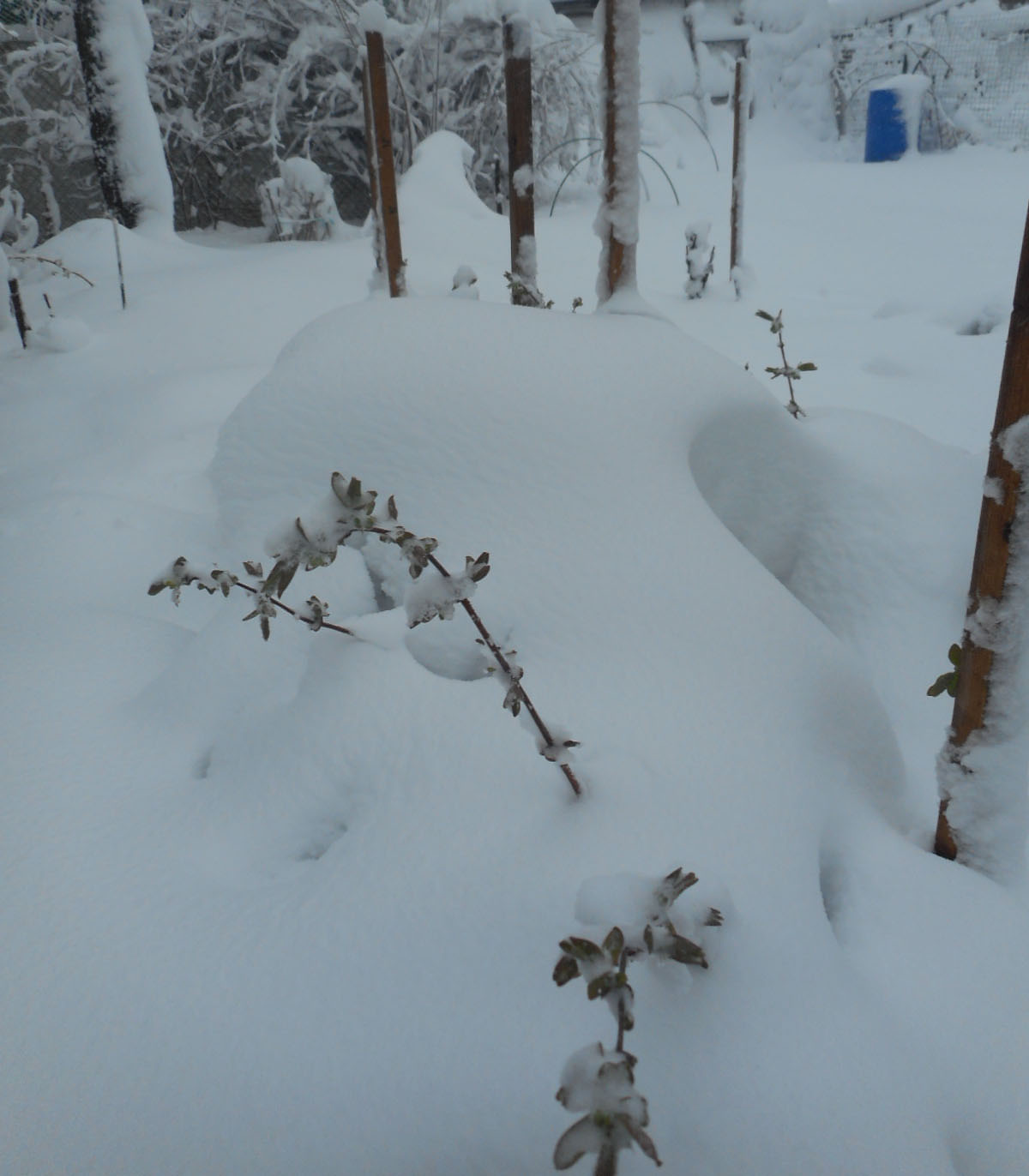 Больше боялась не того, что замерзнут, а что ветки поломаются. От опор то уже отвязала. Молодые побеги кустарников под тяжестью снега плашмя легли на землю. Сейчас поднялись. Видимых повреждений не много, но в течении лета еще могут проявиться. Я еще в прошлом году задавалась вопросом, как лучше поступать с надломленными зимой веточками жимолости. Если их не обрезать сразу, они восстанавливаются постепенно, жимолость - живучка. Вот только есть ли в этом смысл ? Может всё слабенькое нужно вырезать, пусть новые веточки нарастают. Надломленные веточки как и здоровые пытаются урожай дать, но видно, что не тянут.