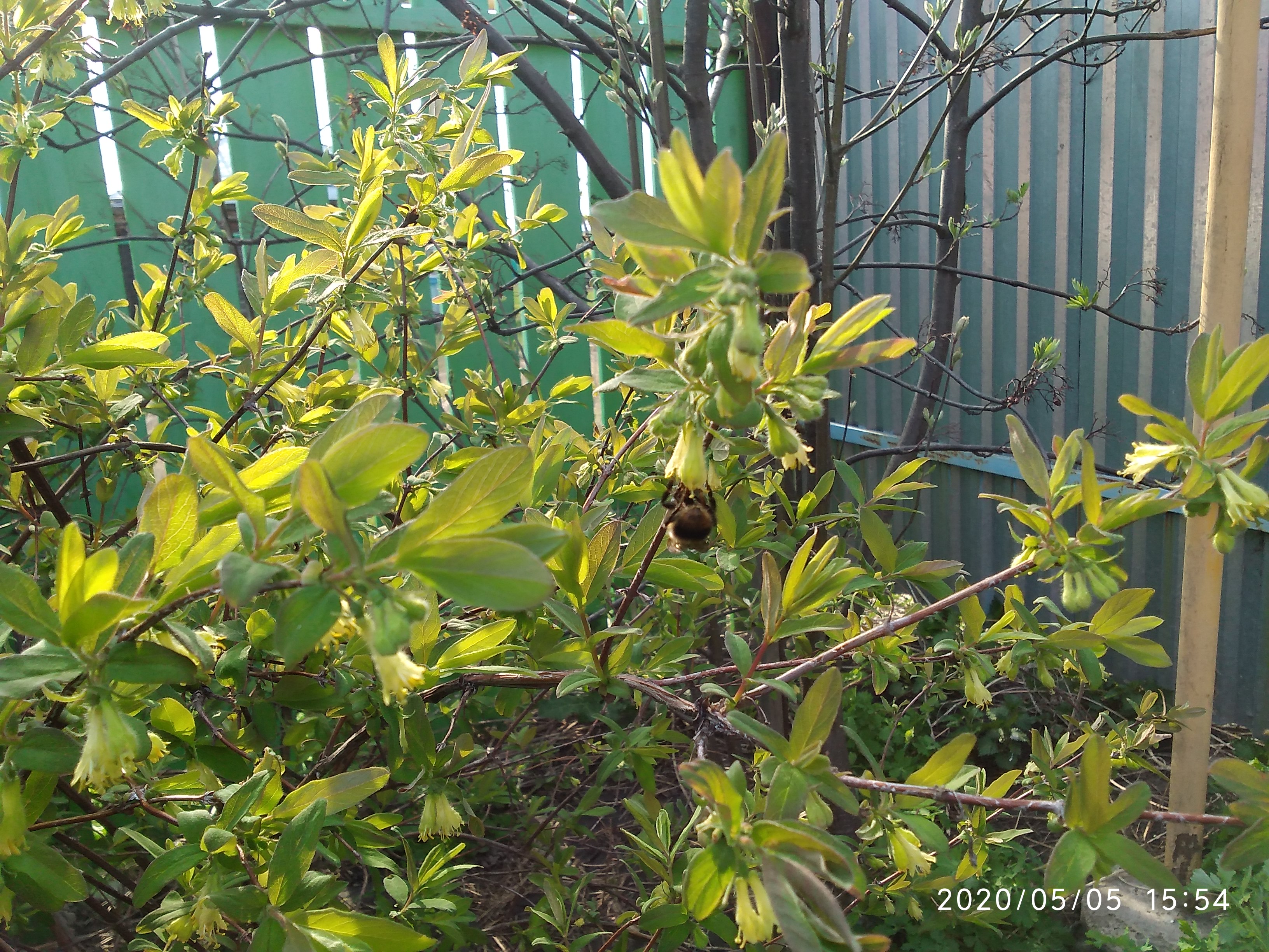 Этой очень тёплой зимой жимолость цвела второй раз. Сейчас цветов очень мало. Усохло полкуста Юганы с южной стороны. Ну и второгодки местами частично посохли. В нашем районе Подмосковья совсем неудачный год.