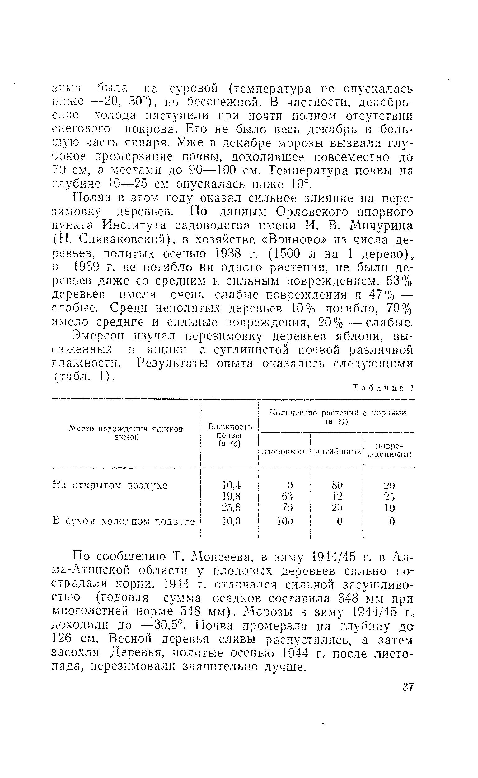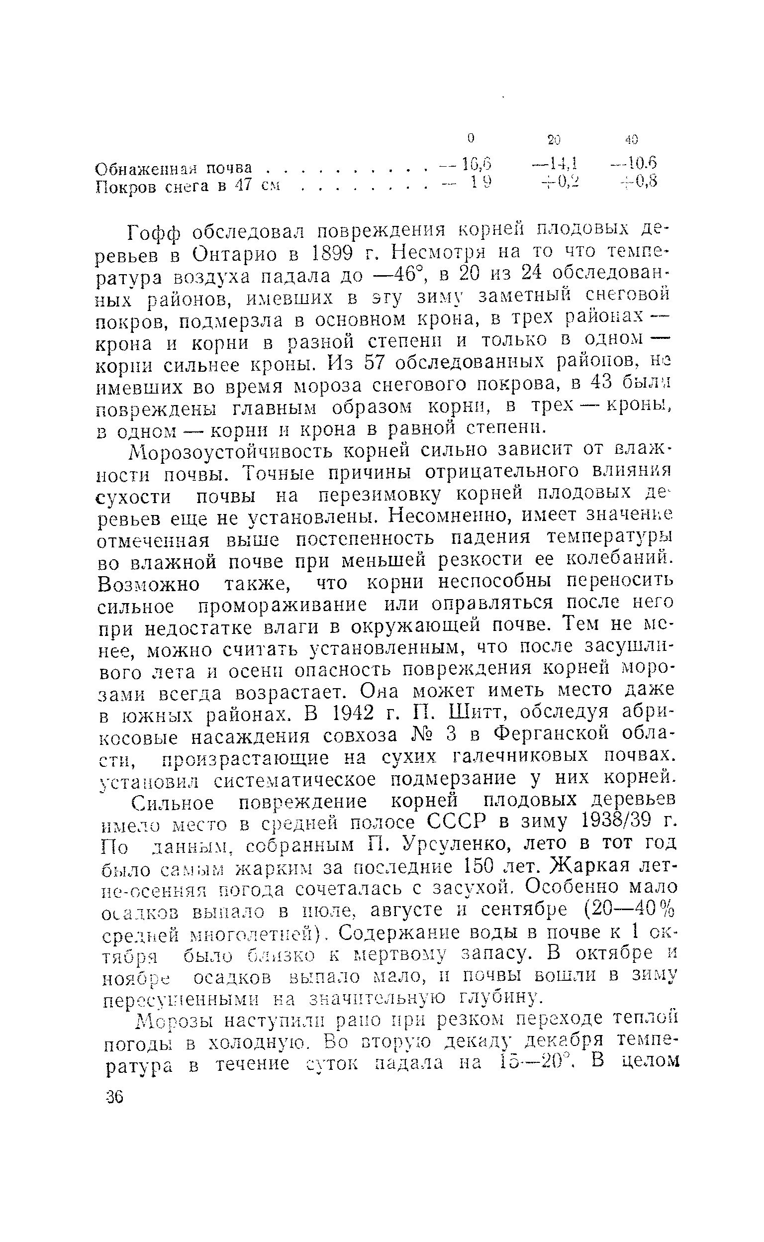 Из книги: Метлицкий З.А. Зимние и весенние повреждения плодовых деревьев. Москва, 1950. Приведены сведения из экспериментальной работы по определению морозостойкости корней у плодовых. Надеюсь, BECHA, известный своим негативным отношением к российским учёным, не заподозрит уважаемого учёного из США в недобросовестности и подтасовке. Замечу, яблоня исследовалась французская сидровая (морозостойкость корневой системы у наших, как мы выяснили, повыше), а вот груша, очевидно, примерно из той серии, сеянцы которых BECHA рекомендовал использовать в качестве подвоя в Костромской области.