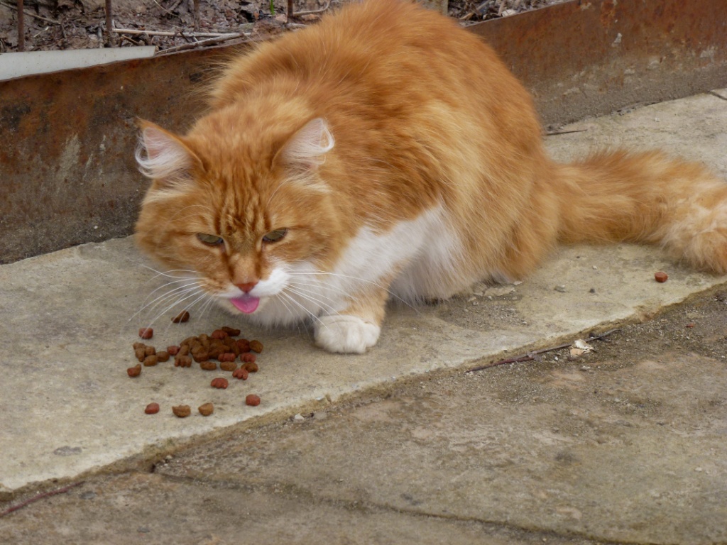 Сначала основательно оторвала все листья с одной стороны , а потом еще еще даже остатки стебельков листов дообдирала