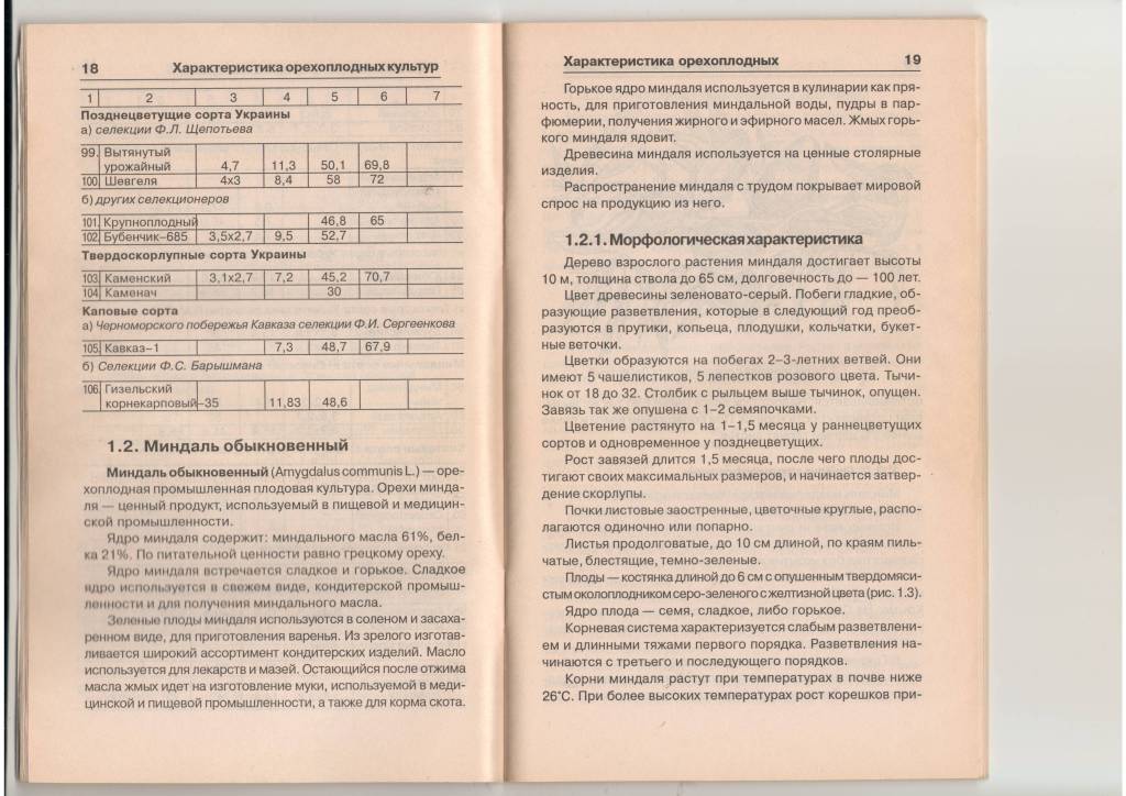 Дерево умеренного роста и по многим признакам сходен с сортом Идеал. Кистевой тип плодоношения, но плоды мельче, чем у Идеала. Средняя масса - 8г, скорлупа тонкая. Выход ядра 49,7%, сладковатого вкуса, отделяется очень легко. По некоторым данным, этот сорт более вынослив и морозоустойчив, чем сорт Идеал.