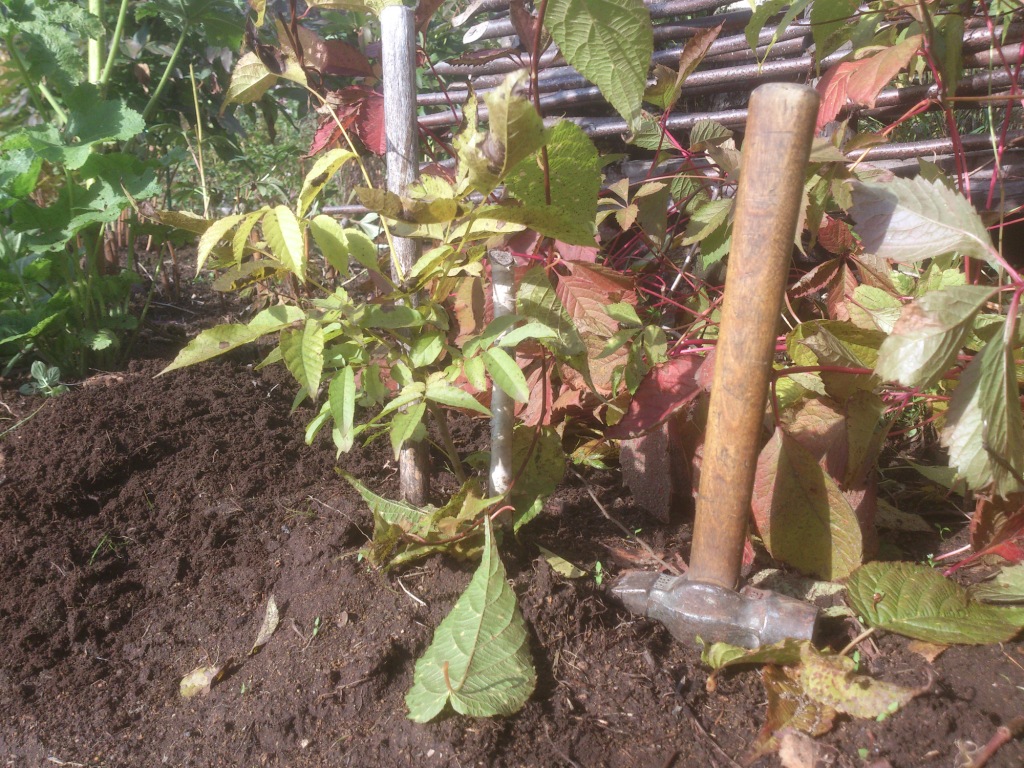 Сегодня высаживали орехи, все не успели, завтра продолжим. На грядке четыре рядка, два из которых закопаны.