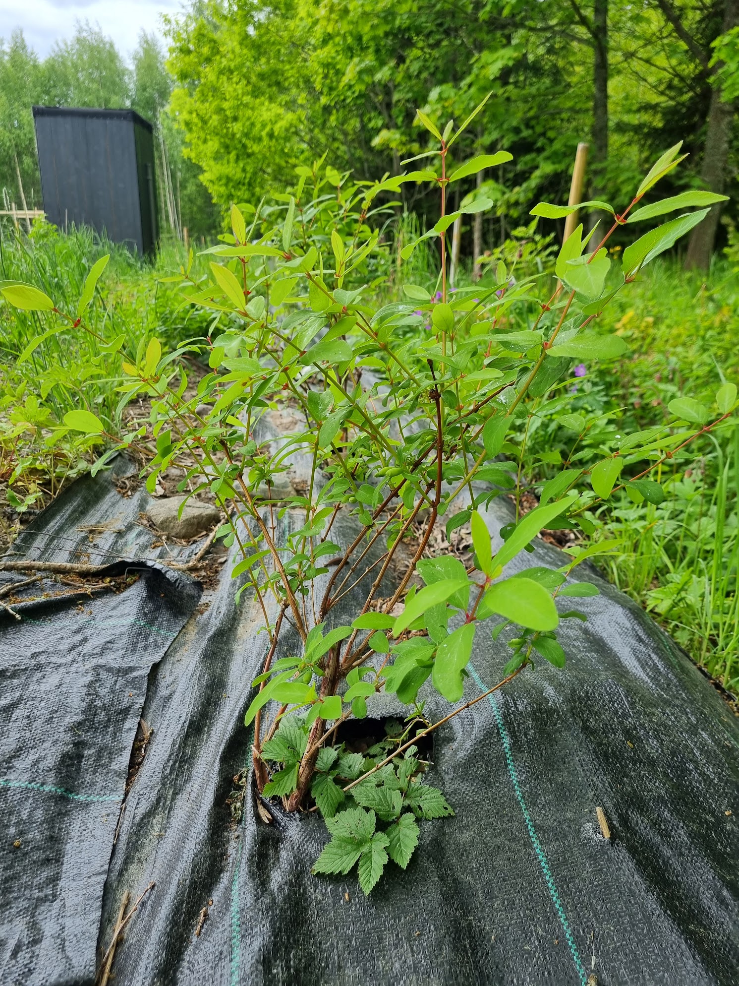 Это точно. Поскольку у нас почки склевали птицы, теперь жимолость нашла резервы и выпускает новые бутоны. Висят зелёные ягодки и одновременно бутоны только выдвигаются. Будет растя-я-янутое плодоношение. Или может от жары недозрелая посыпется. У куста жимолости длинный период цветения