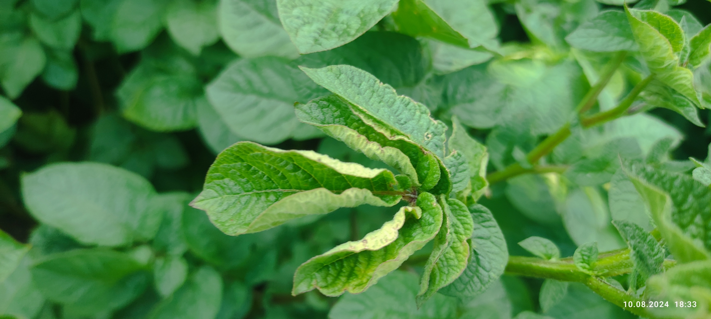 Тут нужно смотреть, нет ли Вируса скручивания листьев (PLRV). Он ещё на клубнях проявляется в виде точечного некроза на срезе.