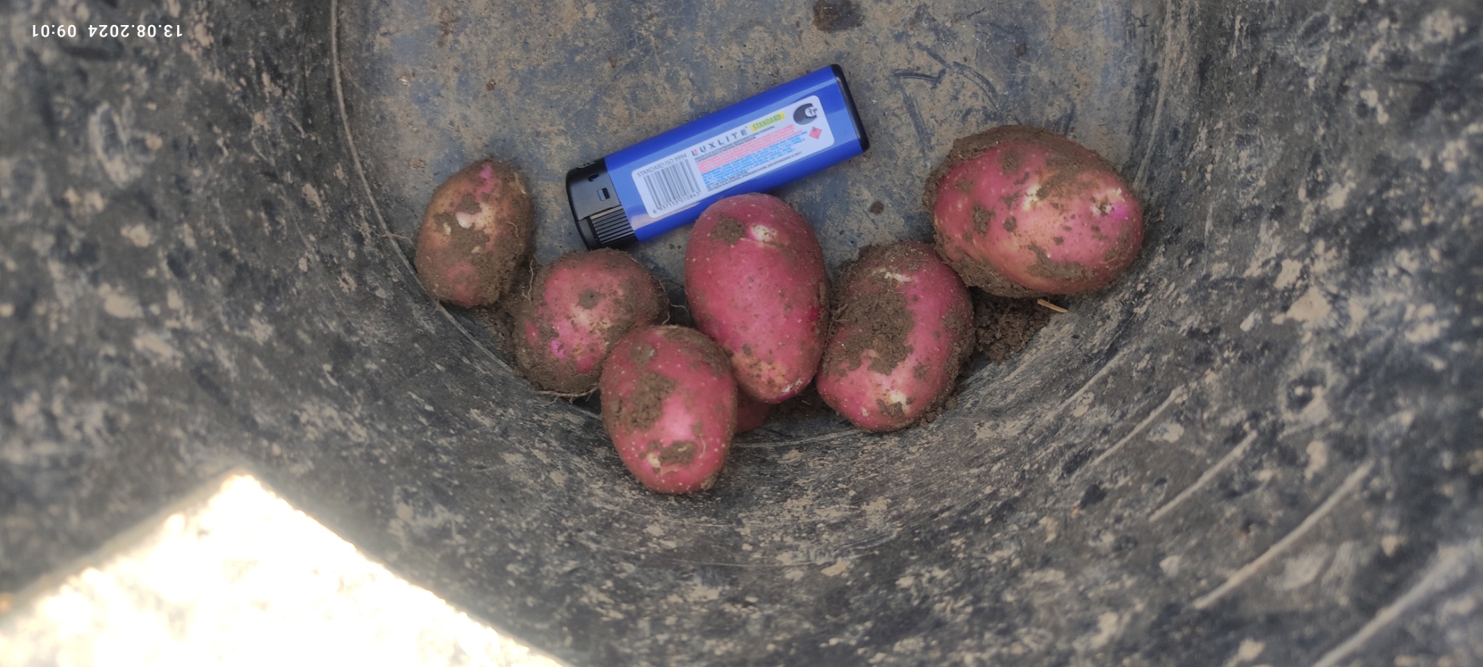 До цели в килограмм с куста не дотянули сильно, уже понятно что год будет сильно менее урожайный чем прошлый, там кило с куста было у всех сортов, а у некоторых и 1.5-2 кило с куста. Причём картофель поливался раз в неделю, похоже не особо помогло, чаще что ли поливать надо, да где столько времени взять...