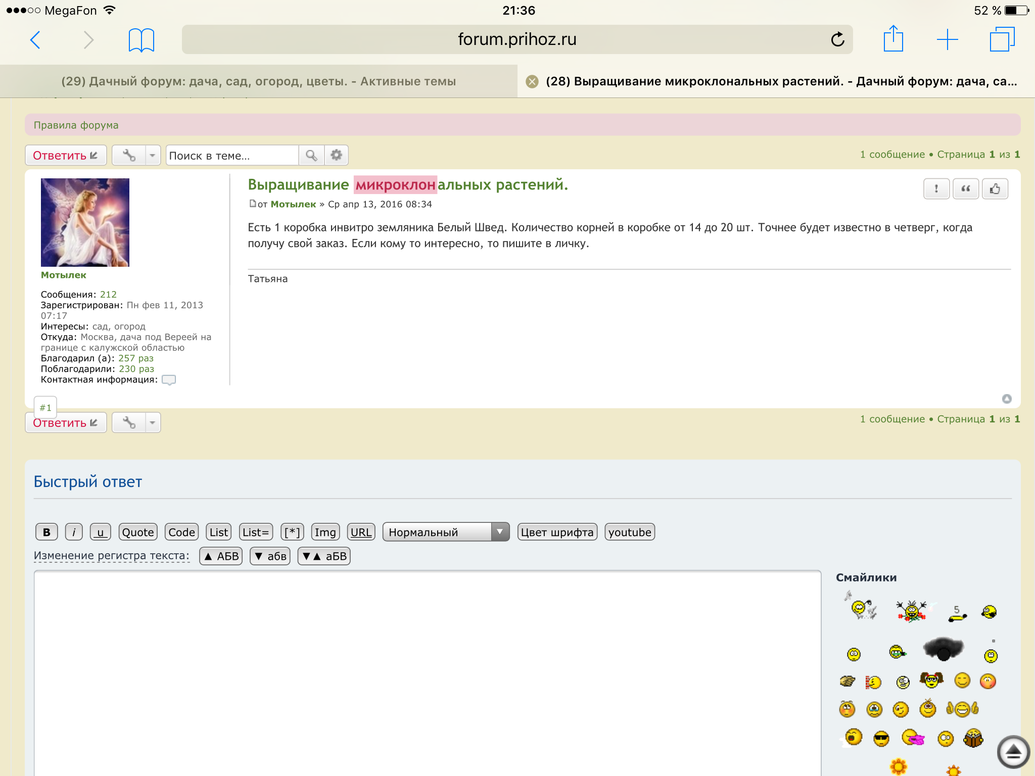 Рано радовалась, вошла, опять набрала в поиске Микроклон и снова в теме одно единственное сообщение Мотылечка...,