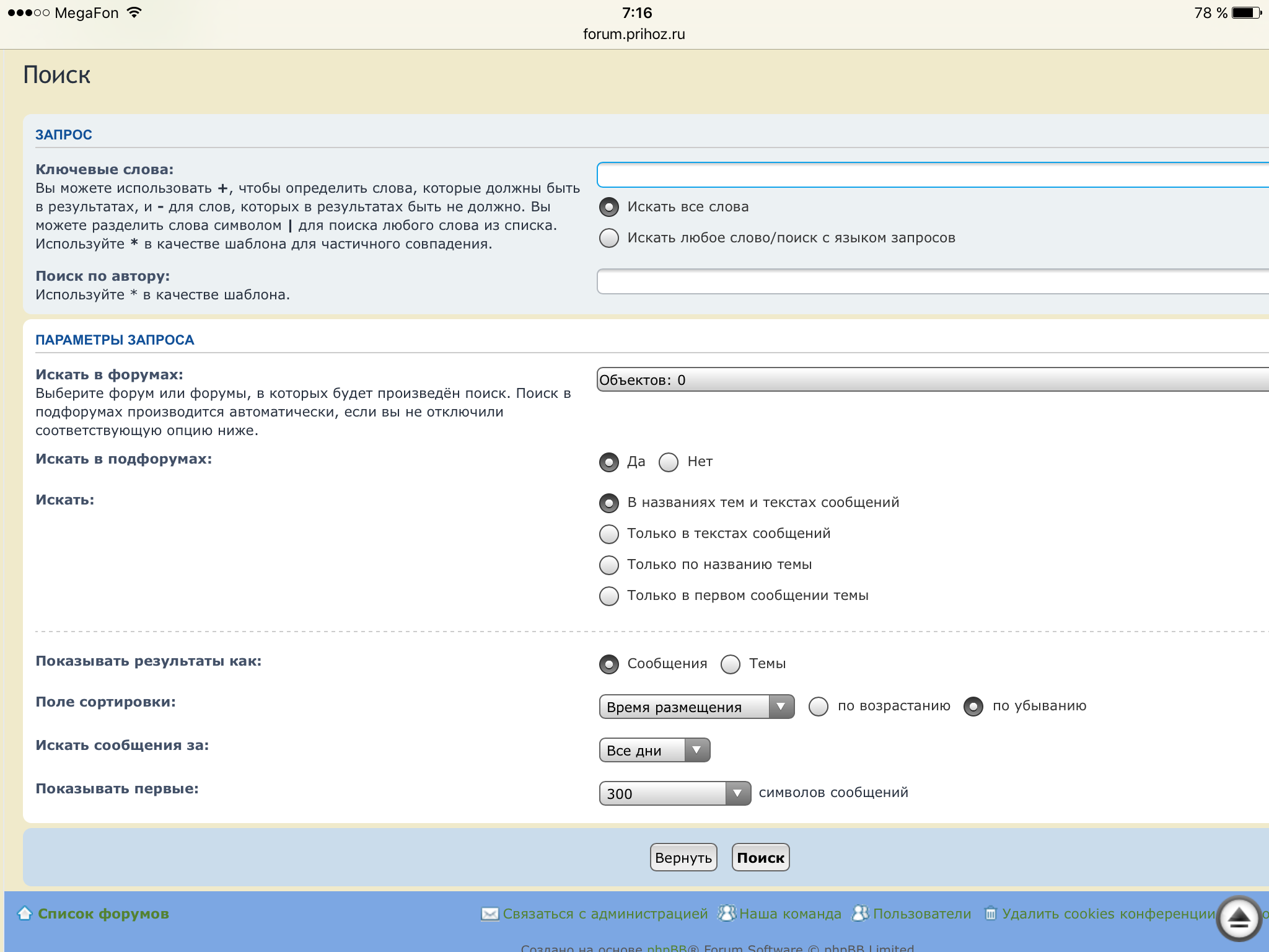 1. Переходим на страницу поиска (шестеренка) http://forum.prihoz.ru/search.php