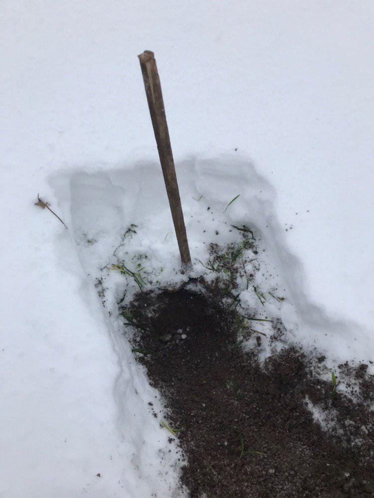 У нас тоже. А на даче наверное еще больше. Надо соседу позвонить. Интересно, мои молодые розочки выживут без снега?