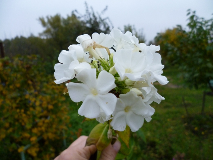 Не все флоксы показали себя во всей красе в это мокрое лето. Некоторые так и не распустились, стоят в бутонах до сих пор. Но уже пора обрезать, а то, боюсь, снег ляжет.