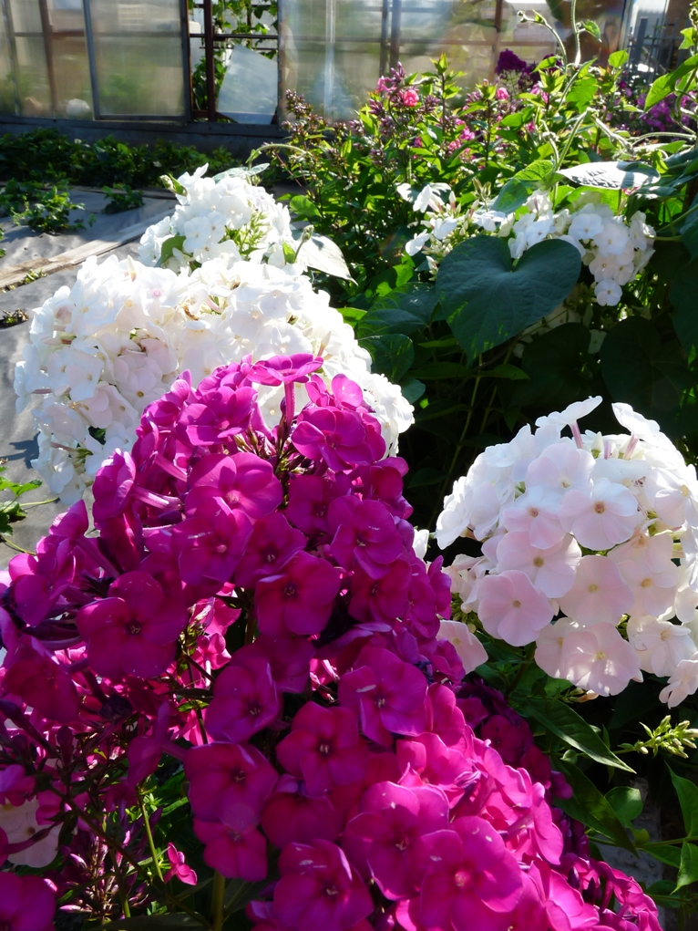 Флоксы Сиреневый Туман, Тайна и Румяный.