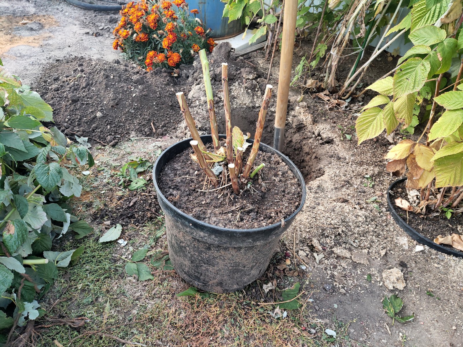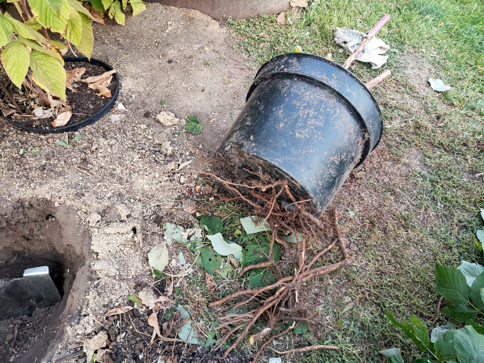 Небольшая иллюстрация на тему объема корневой системы куста малины. В выходные выкорчевал Осеннее сокровище (Autumn Treasure). Сорт хоть и урожайный, но довольно поздний и вкус посредственный. Сажал 2 года назад в 15 л. горшок.