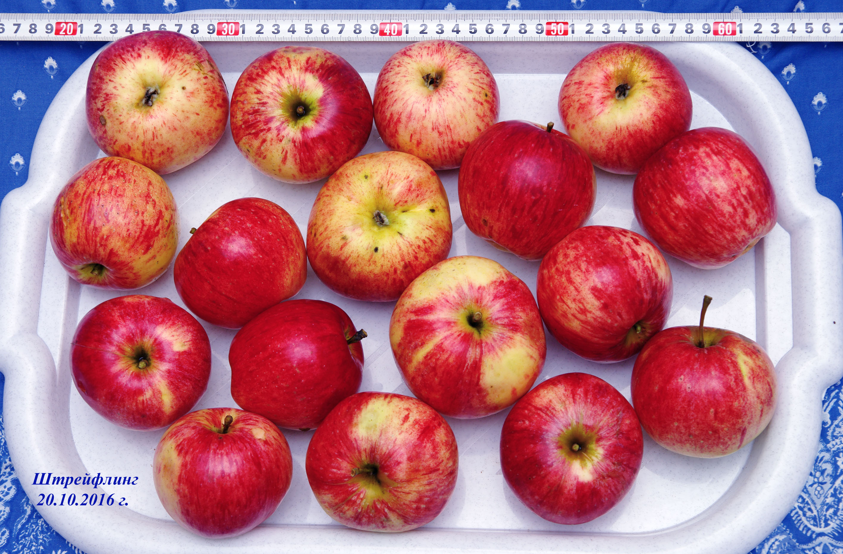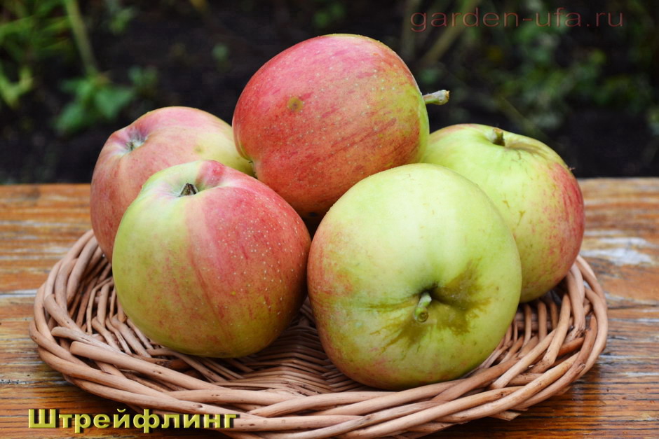 У меня в саду 5 старых яблонь штрейфлинга,им лет 80 уже.Яблоки вкусные,сочные,но если только сорваны с дерева.Лежат максимум неделю и сочность пропадает.У штрейфлинга, действительно, очень много разновидностей,у меня на двух деревьях плоды более крупные до 300 грамм но не такие вкусные как на других трех яблонях штрейфлинга,они на фото.